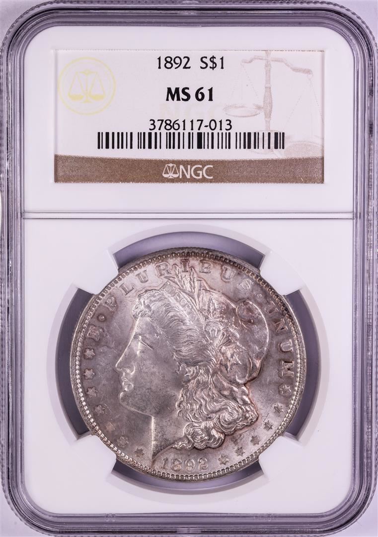 One 1892 $1 Morgan Silver Dollar Coin NGC MS61. NGC Certified.