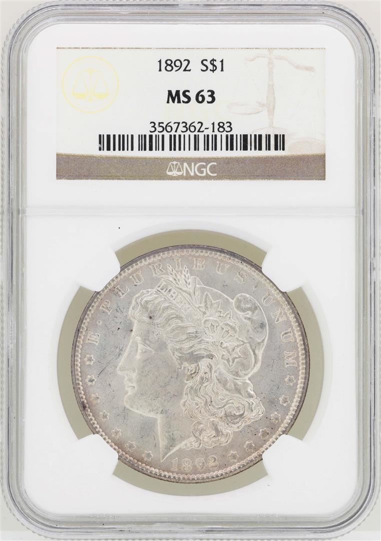 One 1892 $1 Morgan Silver Dollar Coin NGC MS63. NGC Certified.