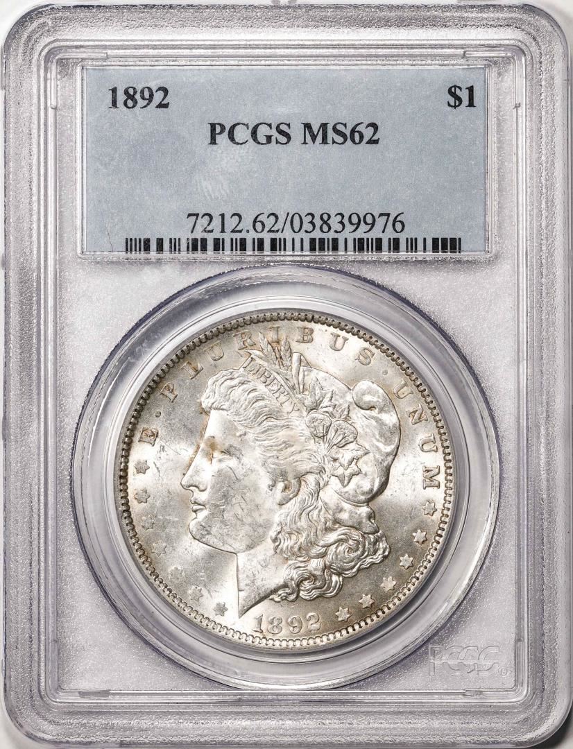 One 1892 $1 Morgan Silver Dollar Coin PCGS MS62. PCGS Graded.