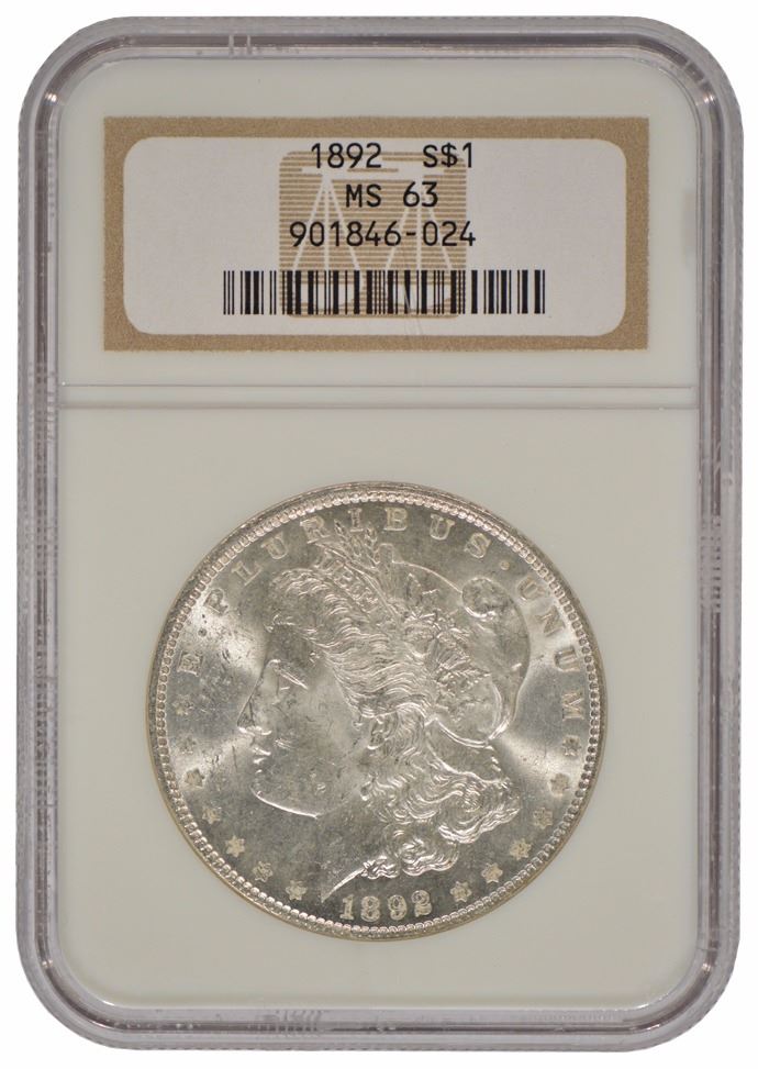 One 1892 $1 Morgan Silver Dollar Coin PCGS MS63.