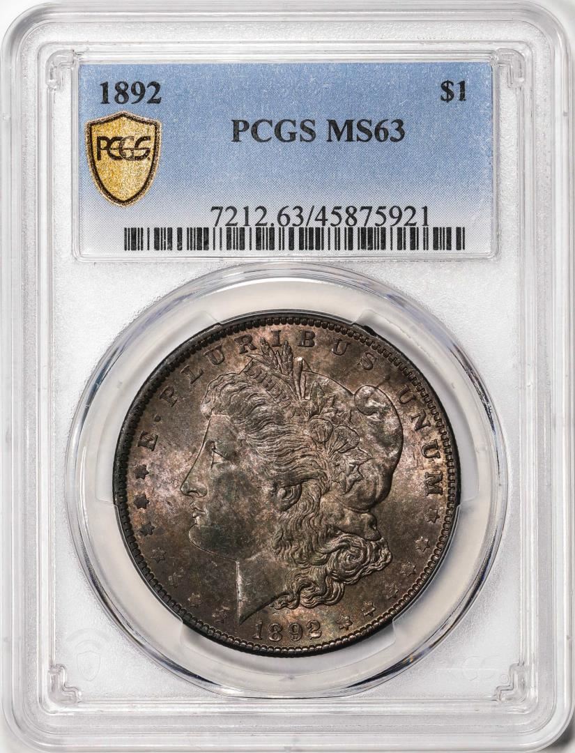 One 1892 $1 Morgan Silver Dollar Coin PCGS MS63. PCGS Graded.