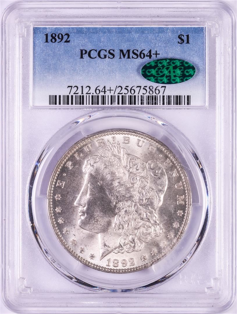 One 1892 $1 Morgan Silver Dollar Coin PCGS MS64+ CAC. PCGS Graded.