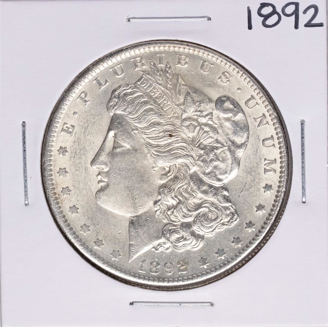 One 1892 $1 Morgan Silver Dollar Coin.