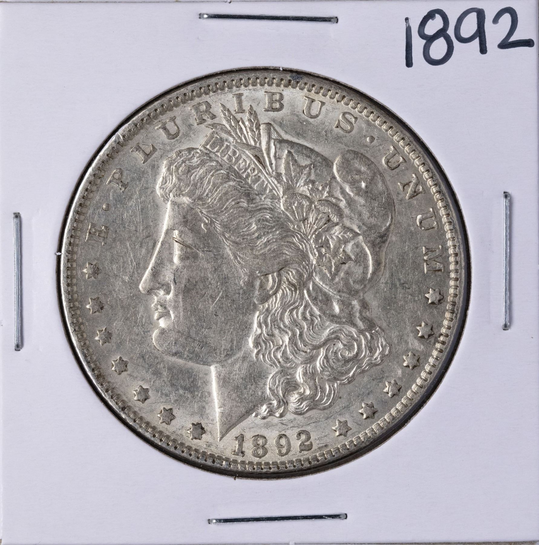 One 1892 $1 Morgan Silver Dollar Coin.