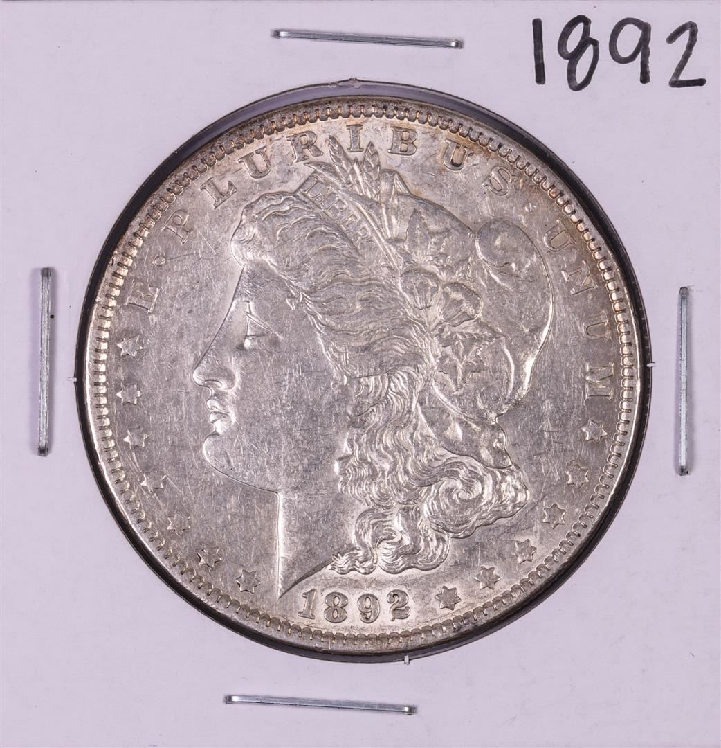 One 1892 $1 Morgan Silver Dollar Coin.
