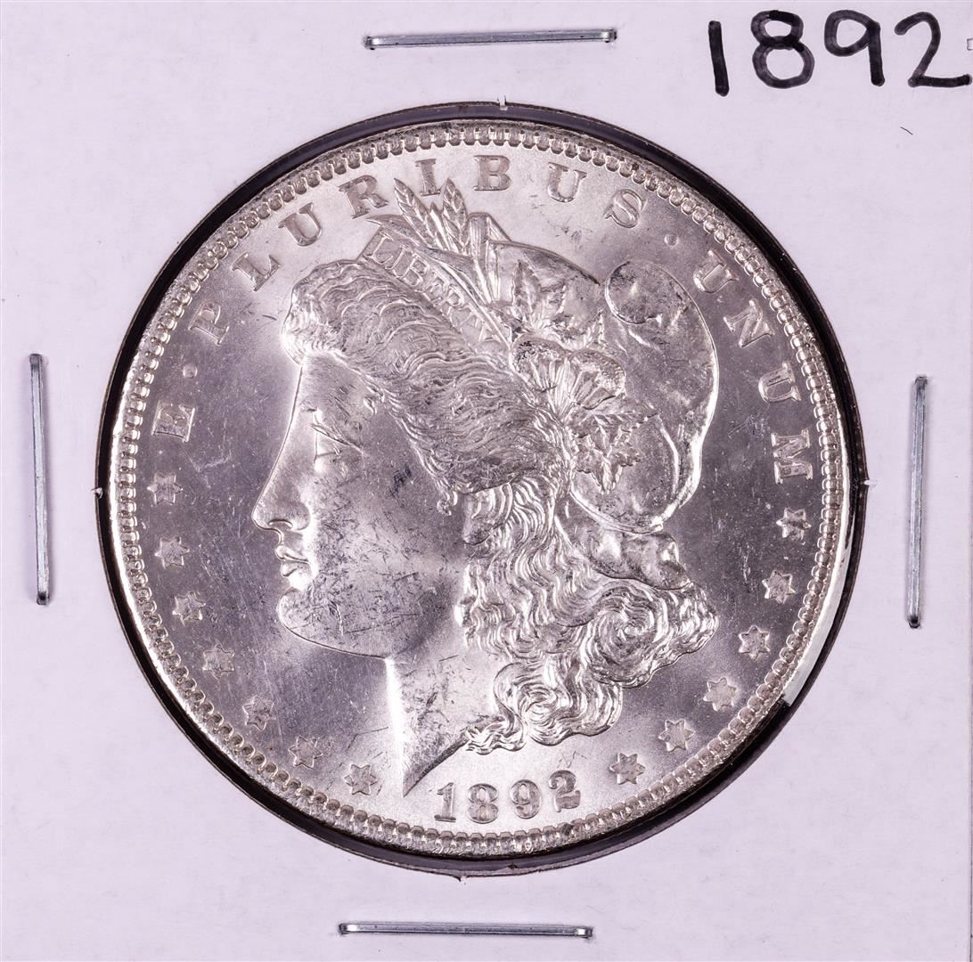 One 1892 $1 Morgan Silver Dollar Coin.