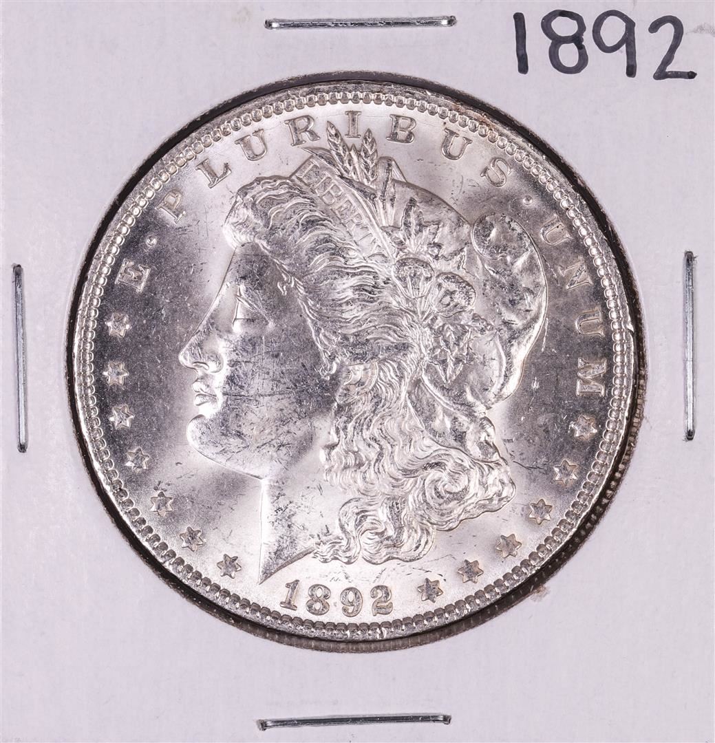 One 1892 $1 Morgan Silver Dollar Coin.