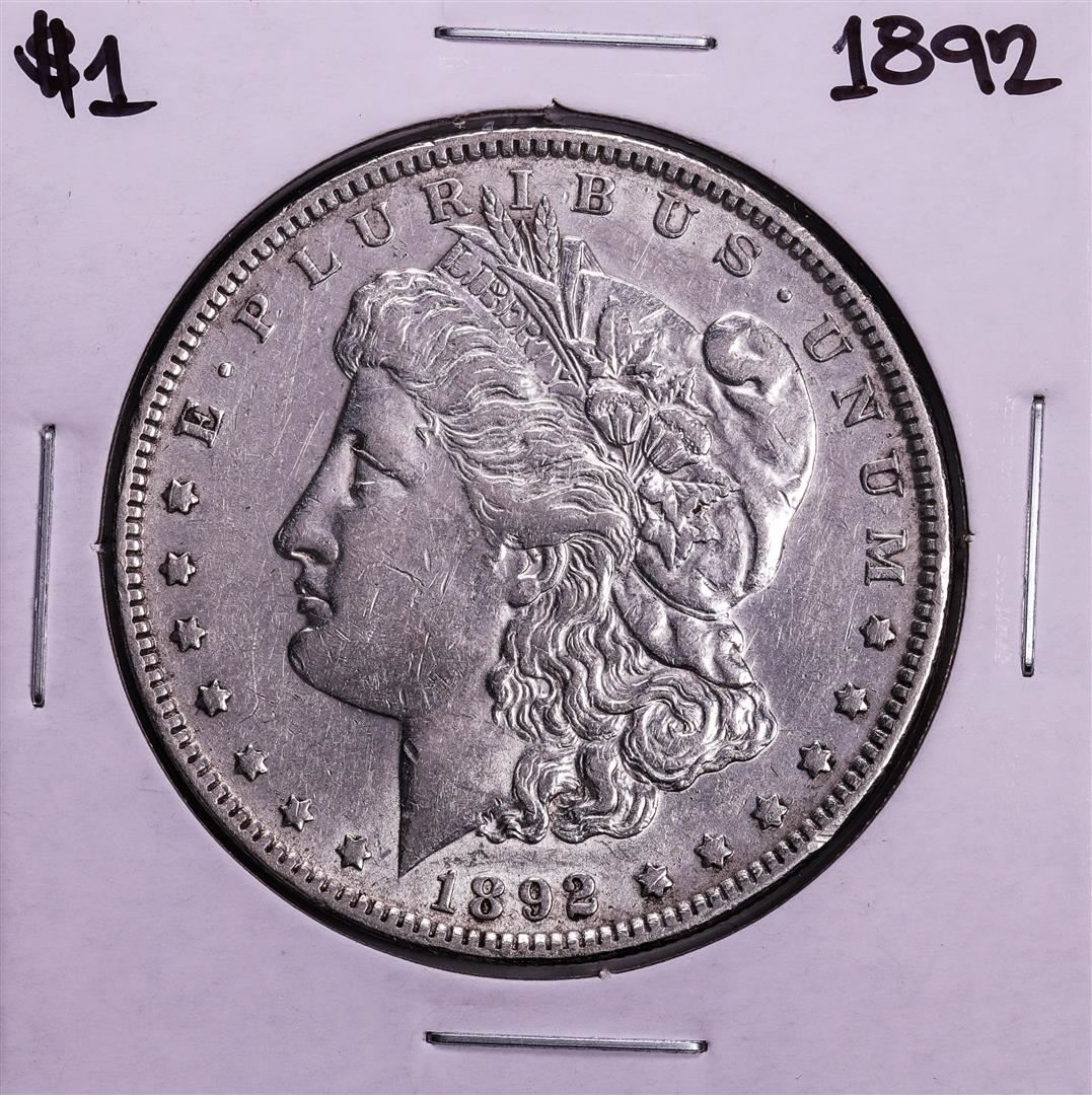 One 1892 $1 Morgan Silver Dollar Coin.