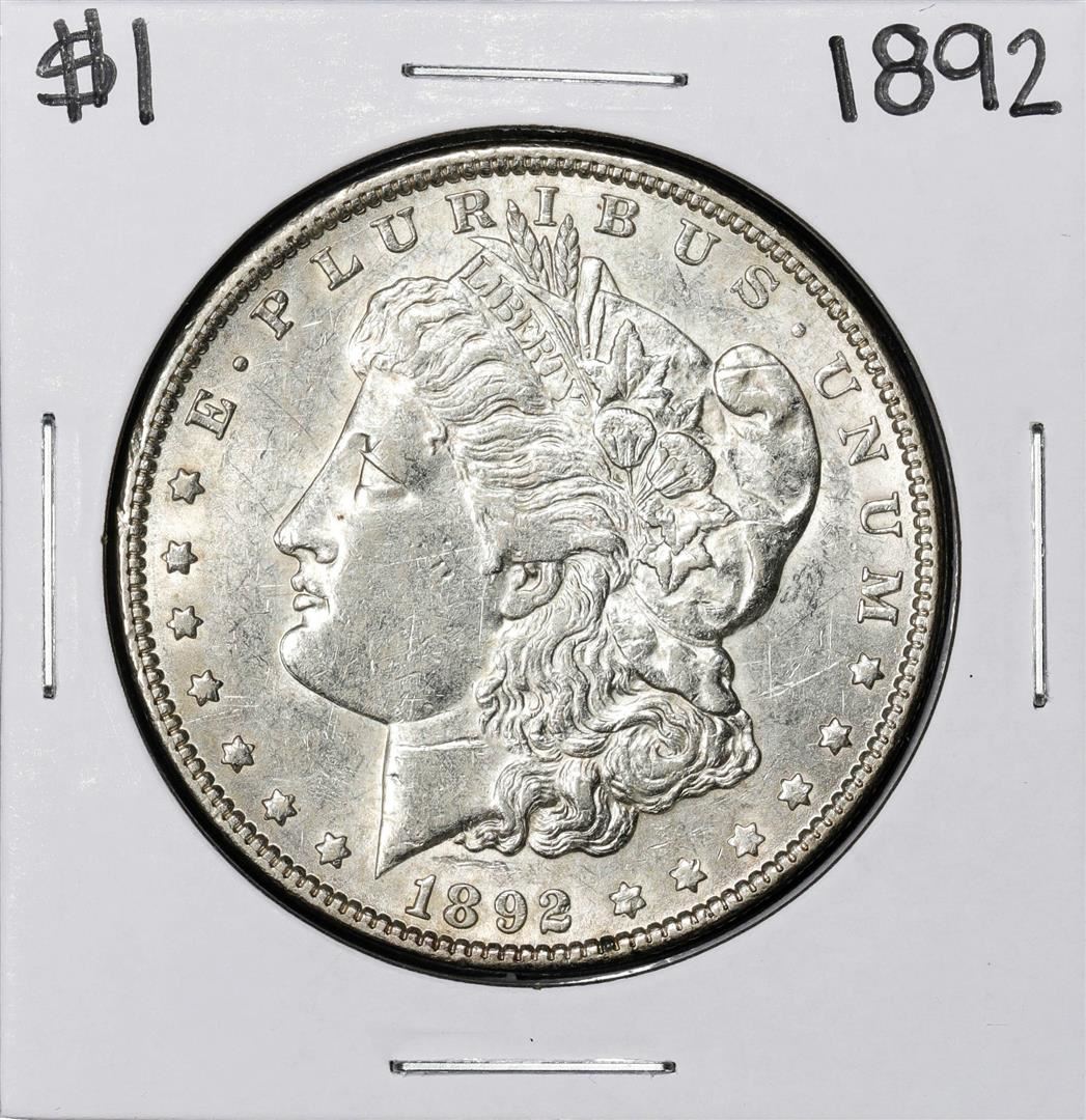 One 1892 $1 Morgan Silver Dollar Coin.