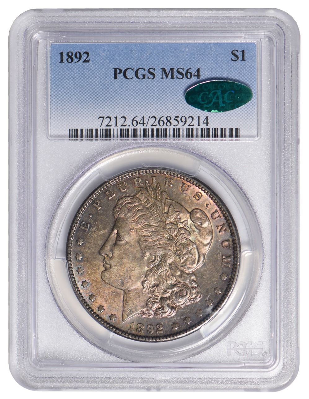 One 1892 $1 Morgan Silver Dollar PCGS MS64 CAC.