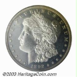 <table><tr><td><TABLE cellSpacing=0 cellPadding=0 width="100%" bgColor=#000000 border=0><TBODY> <TR><TD width="100%"><TABLE cellSpacing=1 cellPadding=3 width="100%" border=0><TBODY><TR><TD width="100%" bgColor=#79735c><FONT face=arial color=#ffffff size=3><B>Description</B> </FONT></TD></TR><TR><TD width="100%" bgColor=#ffffff><FONT face=arial size=2><B>1892 $1 PR66 Cameo PCGS.</B></I> Last sold in the June, 2002 Bowers & Merena sale, where it was described as "Brilliant silver gray with lightly toned rims and immaculate reflective fields. Full of eye appeal with nicely frosted devices, particularly on the reverse. A tiny spot is noted at the point of the star near 9:00 on the obverse, nearly invisible planchet flaw present over ER of AMERICA on reverse rim. A gloriously attractive dollar from a Proof mintage of only 1,245 pieces, worthy of strong bidder support."<BR><I>Ex: (Bowers and Merena, 6/2002), lot 1397, where it realized $8,050.</B></I> </FONT></TD></TR></TBODY></TABLE></TD></TR></TBODY></TABLE><BR><A name=PricesRealized></A><TABLE cellSpacing=0 cellPadding=0 width="100%" bgColor=#000000 border=0><TBODY><TR><TD width="100%"><TABLE cellSpacing=1 cellPadding=3 width="100%" border=0><TBODY><TR><TD width="100%" bgColor=#79735c><A name=PR><FONT face=arial color=#ffffff size=3><B>Previous Prices from Heritage Auctions</B> </FONT></A></TD></TR><TR><TD bgColor=#f6f6ed><TABLE cellSpacing=0 cellPadding=0 width="100%" border=1><TBODY><TR><TD align=middle width="33%"><B>Date</B></TD><TD align=middle width="33%"><B>Service</B></TD><TD align=middle width="33%"><B>Price</B></TD></TR><TR bgColor=whitesmoke><TD width="33%"><B>09/20/2003</B></TD><TD width="33%">NGC</TD><TD width="33%">$6,037.50</TD></TR><TR bgColor=whitesmoke><TD width="33%"><B>06/08/2002</B></TD><TD width="33%">NGC</TD><TD width="33%">$7,475.00</TD></TR></TBODY></TABLE></TD></TR><TR><TD bgColor=#ffffff><FONT face=arial size=1 ?>PLEASE NOTE: All prices realized reflect the final hammer price PLUS the buyer's premium in auctions that charge a buyer's premium. Each item has a notation at the top of the listing indicating whether that lot included a buyer's premium. Example: A item that sells with a final hammer price of $100 and a 20% buyer's premium will display with a price realized of $120. All information listed is intended to be as accurate as possible, but errors are possible. Please use this guide carefully and inform us of any inaccuracies. </FONT></TD></TR></TBODY></TABLE></TD></TR></TBODY></TABLE><BR><TABLE cellSpacing=0 cellPadding=0 width="100%" bgColor=#000000 border=0><TBODY><TR><TD width="100%"><TABLE cellSpacing=1 cellPadding=3 width="100%" border=0><TBODY><TR><TD width="100%" bgColor=#79735c colSpan=6><FONT face=arial color=#ffffff size=3><B>Price Guide*</B> </FONT></TD></TR><TR bgColor=#f6f6ed><TD align=middle><B>Grade</B> </TD><TD align=middle><B>Coin World<BR>(Trends)</B> </TD><TD align=middle><B>Numismedia<BR>Retail</B> </TD><TD align=middle><B>Numismedia<BR>Wholesale</B> </TD><TD align=middle><B>Coin<BR>Universe</B> </TD><TD align=middle><B>Heritage<BR>Value Index</B> </TD></TR><TR bgColor=#ffffff><TD align=middle>65</TD><TD align=right>---</TD><TD align=right>---</TD><TD align=right>---</TD><TD align=right>---</TD><TD align=right>$3,780.00</TD></TR><TR style="FONT-WEIGHT: bold" bgColor=#cccfdd><TD align=middle>66</TD><TD align=right>---</TD><TD align=right>---</TD><TD align=right>---</TD><TD align=right>---</TD><TD align=right>---</TD></TR><TR bgColor=#ffffff><TD align=middle>67</TD><TD align=right>---</TD><TD align=right>---</TD><TD align=right>---</TD><TD align=right>---</TD><TD align=right>---</TD></TR><TR bgColor=#ffffff><TD colSpan=6><FONT size=1>*All information listed is intended to be as accurate as possible, but errors are possible. No item may be returned or refused based on this information which is provided as a service to our customers. You should contact each pricing source directly to determine the accuracy of this information. </FONT></TD></TR></TBODY></TABLE></TD></TR></TBODY></TABLE><BR><TABLE cellSpacing=0 cellPadding=0 width="100%" bgColor=#000000 border=0><TBODY><TR><TD width="100%"><TABLE cellSpacing=1 cellPadding=3 width="100%" border=0><TBODY><TR><TD width="100%" bgColor=#79735c><FONT face=arial color=#ffffff size=3><B>Population Guide</B> </FONT></TD></TR><TR bgColor=#ffffff><TD align=middle><!-- Begin Output of Population Grid--><TABLE cellSpacing=0 cellPadding=0 width="100%" border=0><TBODY><TR><TD vAlign=center><TABLE cellSpacing=0 width="100%" border=1 cellsadding="3"><TBODY><TR><TD vAlign=center><TABLE cellSpacing=0 cellPadding=3 width="100%" border=1><TBODY><TR><TD vAlign=center align=middle bgColor=#f0f1e8 colSpan=2 <CENTER><FONT face=Arial size=2><B>PCGS Pop </B></FONT><CENTER></CENTER></TD><TD vAlign=center align=middle bgColor=#f0f1e8 colSpan=2><CENTER><FONT face=Arial size=2><B>NGC Pop</B></CENTER></FONT></TD></TR><TR><TD vAlign=center><FONT face=Arial size=2>(66)</FONT> </TD><TD vAlign=center align=right><FONT face=Arial size=2>7</FONT> </TD><TD vAlign=center><FONT face=Arial size=2>(66)</FONT> </TD><TD vAlign=center align=right><FONT face=Arial size=2>16</FONT> </TD></TR><TR><TD vAlign=center><FONT face=Arial size=2>(>66)</FONT> </TD><TD vAlign=center align=right><FONT face=Arial size=2>1</FONT> </TD><TD vAlign=center><FONT face=Arial size=2>(>66)</FONT> </TD><TD vAlign=center align=right><FONT face=Arial size=2>10</FONT> </TD></TR></TBODY></TABLE></TD></TR></TBODY></TABLE></TD></TR></TBODY></TABLE><!-- End Output of Population Grid--></TD></TR></TBODY></TABLE></TD></TR></TBODY></TABLE><BR><TABLE cellSpacing=0 cellPadding=0 width="100%" bgColor=#000000 border=0><TBODY><TR> Important notice: Heritage usually auctions material at the rate of 200-250 lots per hour. On some occasions eBay Live bid software or the Internet may not be able to keep up with the pace of the auction. We recommend placing a realistic absentee bid now as insurance to avoid disappointment. Occasionall