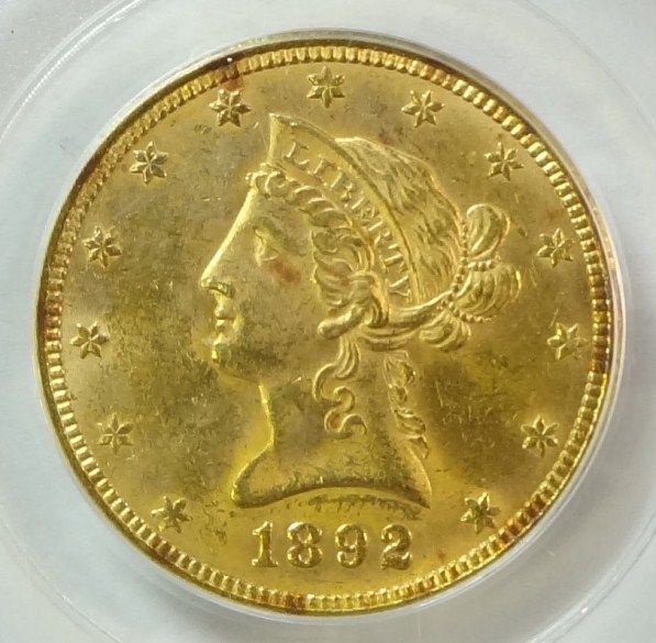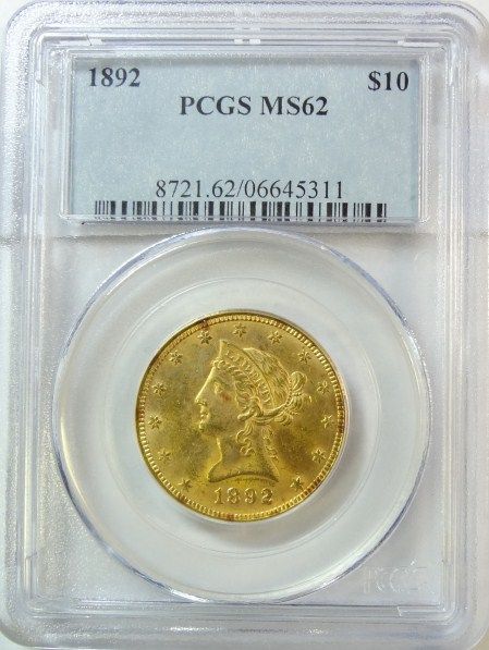 1892 $10 GOLD LIBERTY PCGS MS-62