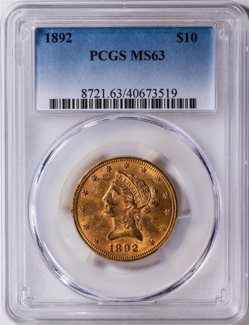 One 1892 $10 Liberty Head Eagle Gold Coin PCGS MS63.