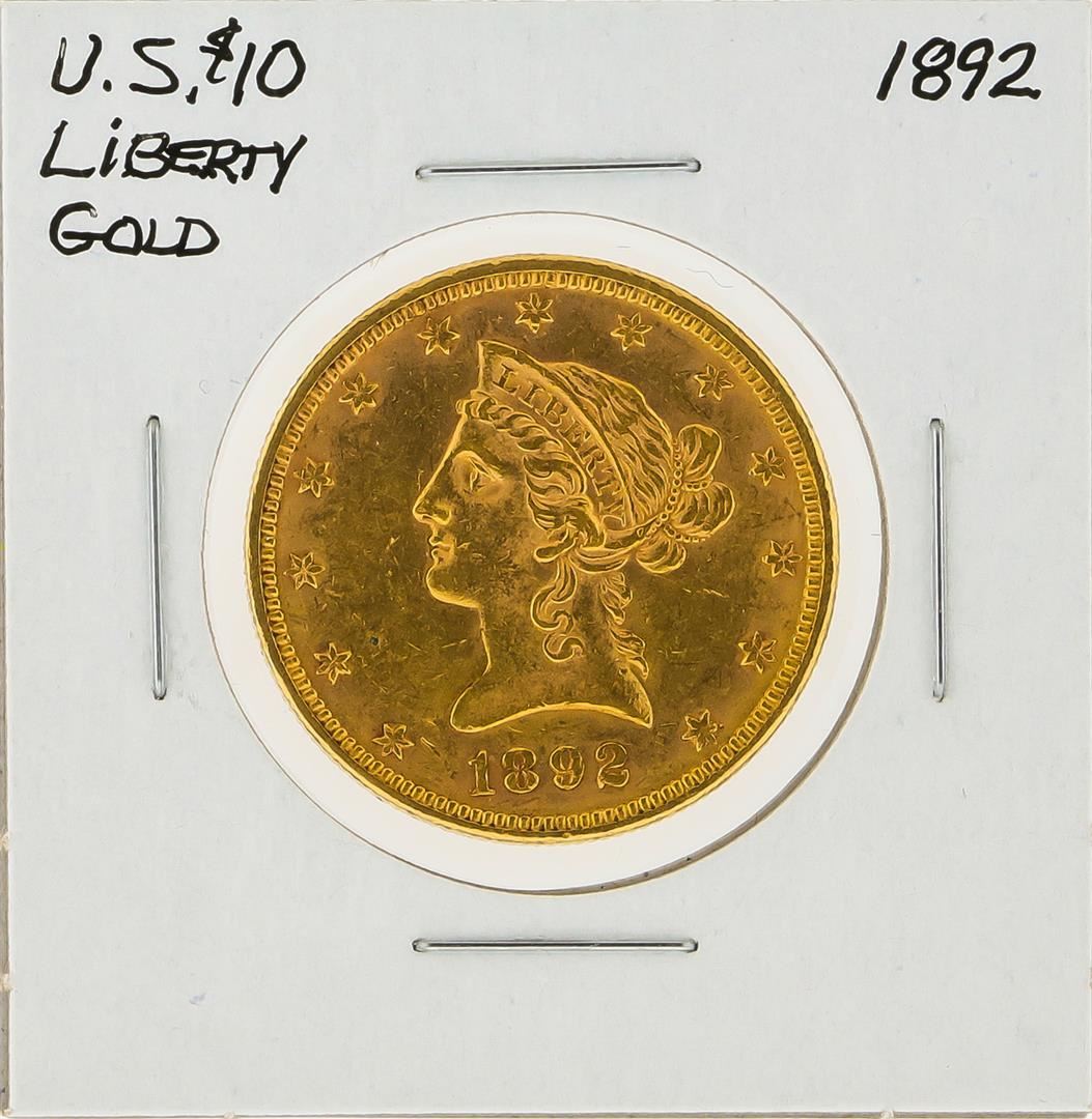 One 1892 $10 Liberty Head Gold Coin.