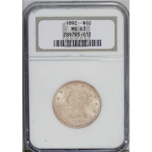 1892 $10 MS63 NGC. A bright and lustrous representativ