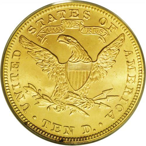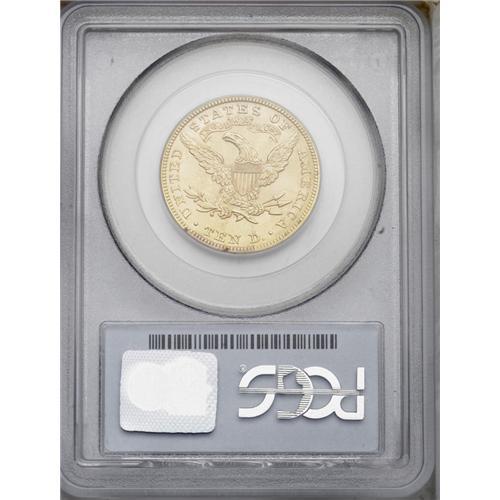 <B>1892<$10> MS66 PCGS.</B></I> Remarkably preserved for this otherwise widely saved and available P-mint ten dollar, an issue that we see with some frequency at the MS63 grade level. However, once the Gem threshold is reached the supply of 1892 eagles dwindles to just 8-10 pieces and among this elite group the present examples is clearly among the finest is existence. Endowed with razor sharp detail and swirling cartwheel effects, each side is lightly tinted in reddish and olive shades. The obverse fields are virtually flawless and only a few minuscule luster grazes affect the portrait. Every bit as impressive, the reverse is kept from as struck status by a handful of microscopic field marks about the eagle. An important offering for the specialist in the long and challenging Liberty eagle series or the connoisseur of memorable quality gold coins. Population: 1 in 66, 0 finer (3/06). <BR><BR><B>Important notice:</B> Heritage usually auctions material at the rate of 200-250 lots per hour. On some occasions eBay Live bid software or the Internet may not be able to keep up with the pace of the auction. We recommend placing a realistic absentee bid now as insurance to avoid disappointment. Occasionally the auctioneer may eliminate or reject an eBay Live bid, and the auctioneer may also reopen a lot after the close of the eBay live bidding (usually because we missed an audience bid), and may reject your bid even if it shows you as the winning bidder. By bidding via eBay Live, you agree that Heritage may award the lot to another bidder at its sole discretion under the circumstances described above or any other reasonable circumstances. Since eBay bids are not shown to us until we open the lot on the floor, we treat those bids just like floor bids. In most cases the floor responds before the eBay bid is presented to us, due to Internet lag time, so for consistency we have made it a policy that floor bids are always considered first over tie eBay live bids. Also please note that all Heritage lots purchased through eBay Live carry a 20% Buyer's Premium. Please make sure you read the Terms and Conditions before you bid. This lot is being auctioned in conjunction with a live floor auction by Heritage Galleries & Auctioneers. All final auction and invoice information will be supplied by Heritage Galleries & Auctioneers, and all other information should be considered preliminary. Lot:4026 <BR><BR><B>Winning Notification and Billing:</B> After the FINAL session in this auction is complete, Heritage will send e-mail and snail mail invoices. This process normally takes several days. All final auction and invoice information will be supplied by Heritage Galleries & Auctioneers, and all other information should be considered preliminary. <BR><BR>This auction will be conducted on a live auction floor and over the Internet through eBay Live. If you choose to place an absentee bid, please take a moment to <font color='#0000ff'><u><a href='http://pages.ebay.com/liveauctions/help/before/laabsentee.html'>learn how eBay Live absentee bidding works</a></u></font><font color='#000000'>