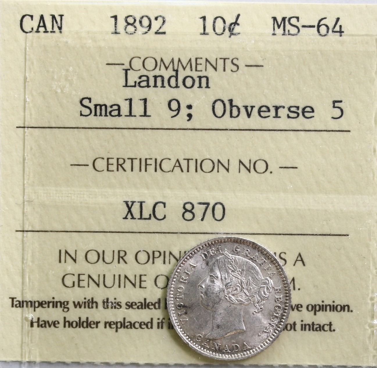 This is an Internet, Live Internet, email, phone and mail auction sale conducted. Information provided by The Canadian Numismatic Company on our web site and in this catalog is strictly AS IS and/or strictly an opinion. No warranty given. Bids are per lot. No lots will be broken. Auction sales are not approval sales. All lots shall be sold to the highest bidder as determined by the auctioneer. If any dispute arises during the sale, the auctioneer has the right to reopen the lot and put it up for sale again. The auctioneer’s decision will be final. In the case of identical (tied) bids during our Live Auctions, the earliest received bid shall take priority. In the case of a tie bid during our Sales, between a mail/fax bid and an Internet bid, the Internet bid will take precedence and obtain the lot. PLEASE CONTACT US IF YOU REQUIRE FURTHER EXPLANATION.