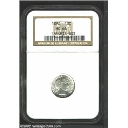 1892 10C MS65 NGC. A razor-sharp Gem that has lustrous and impressively preserved surfaces. The cent