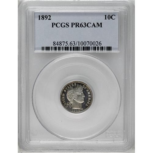 1892 10C PR63 Cameo PCGS. The fields show unfathomable 1892[10C] PR63 Cameo PCGS.