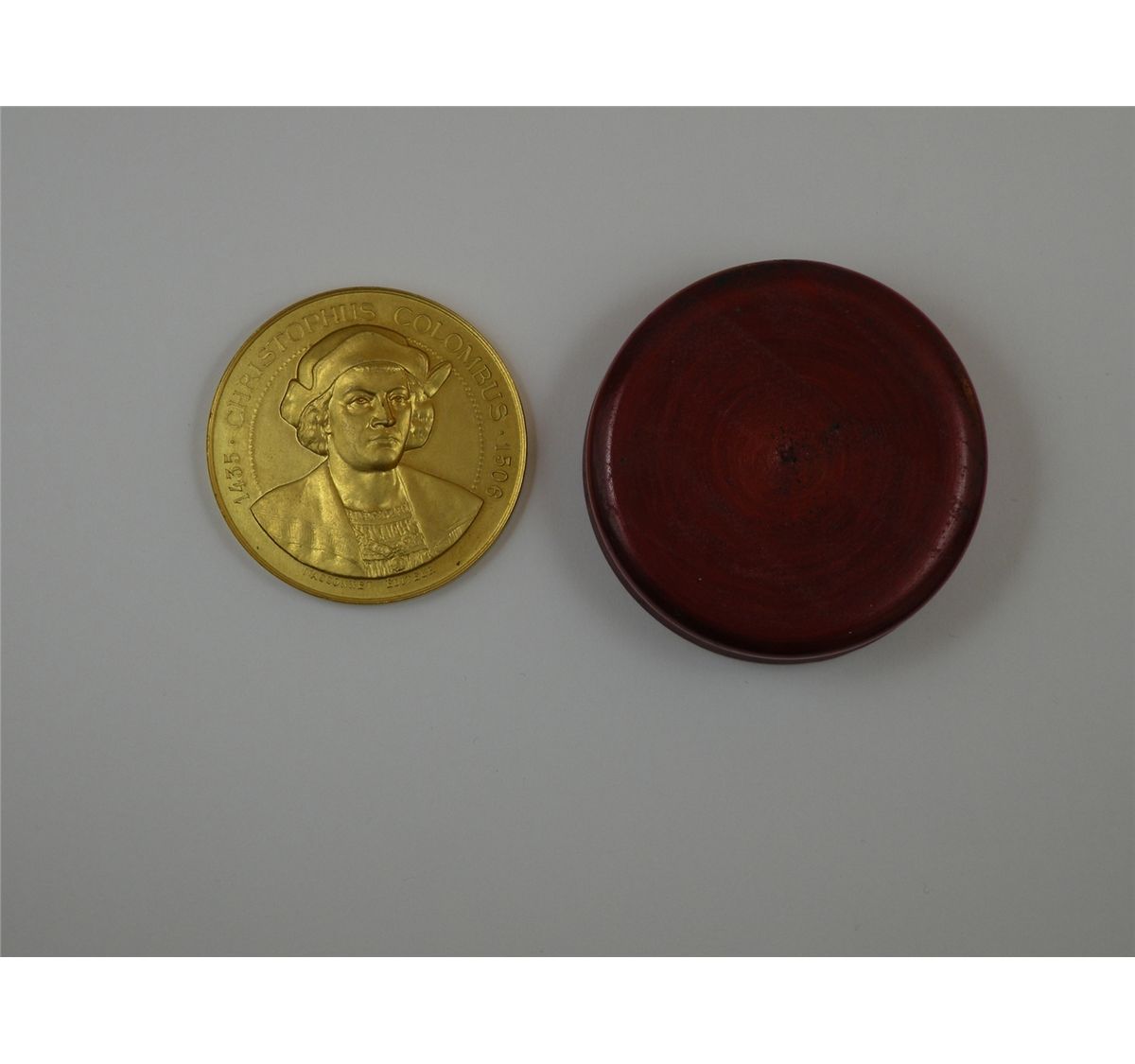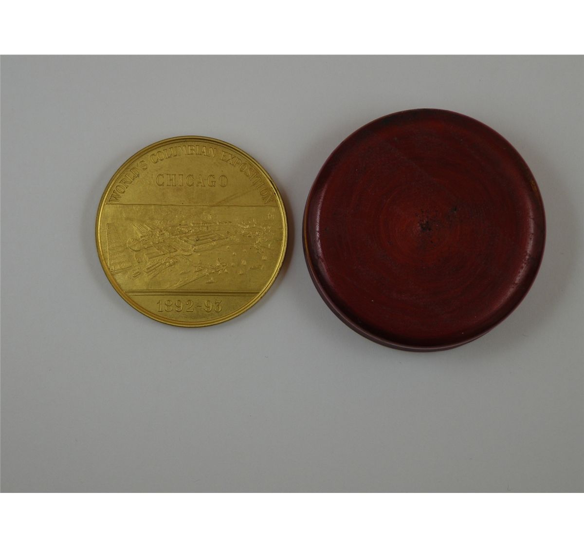 1892- 1893 Columbian Exposition Medal. Gilt Bronze, 50mm. Columbus/ Aerial View of Exposition. Eglit-99. Very Ch. Br. Unc. Including the original box of issue. Outstanding! Est.$225