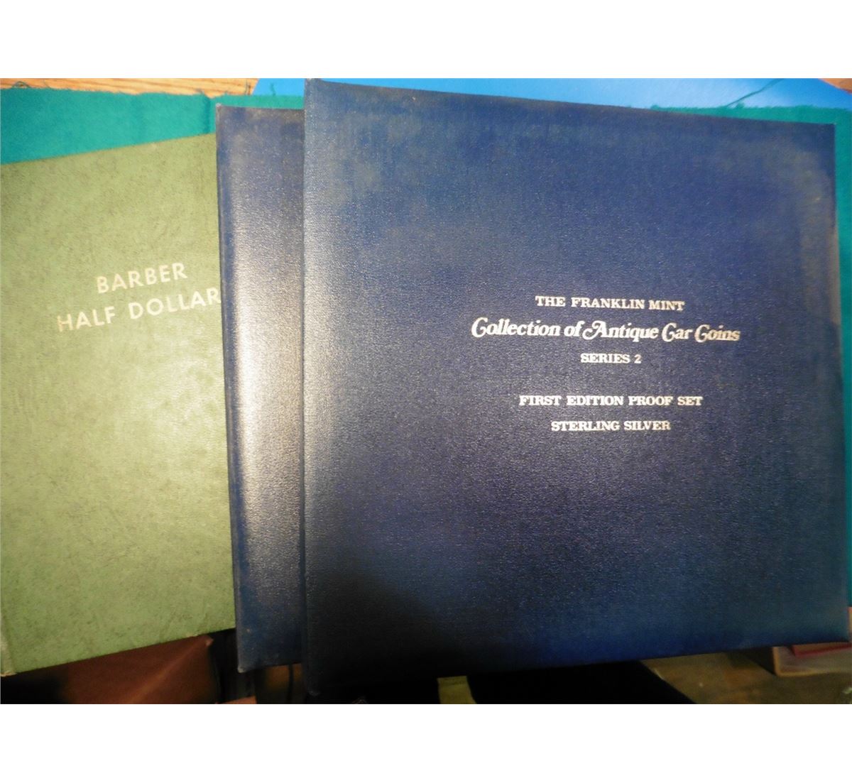 1892-1915 Barber Half Dollar green 1960 era Whitman heavy duty folder; & (2) empty Franklin Mint Albums Series 1 & 2 Collection of Antique Car Coins.
