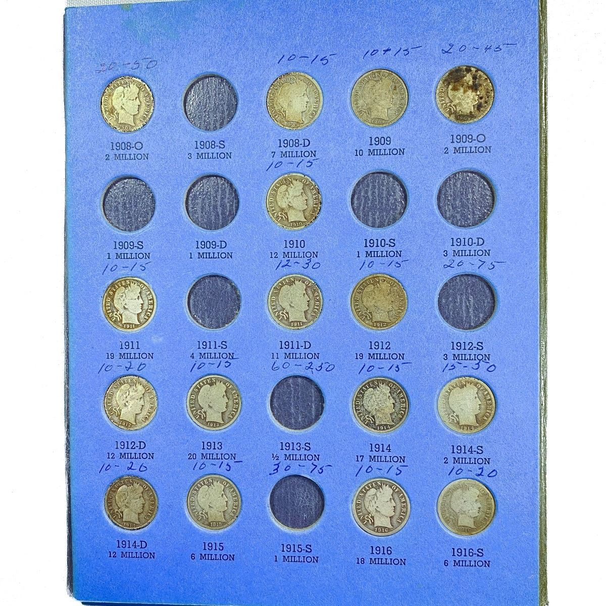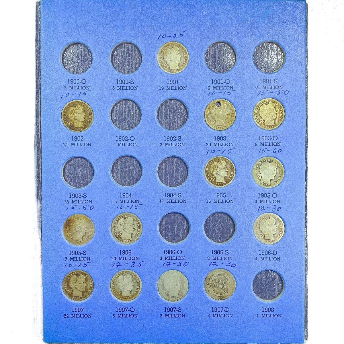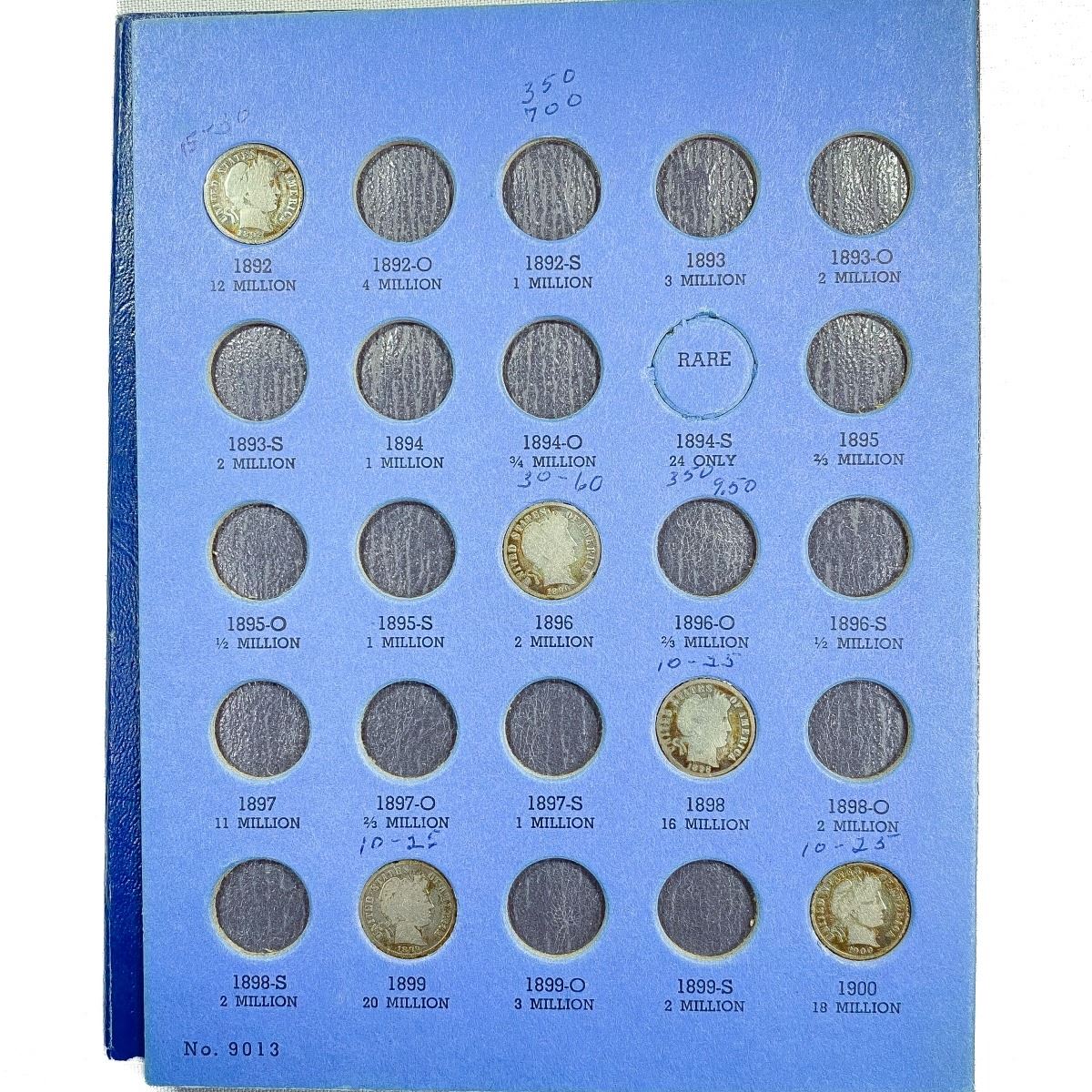 1892-1916 Barber Dime Book (34 Coins)