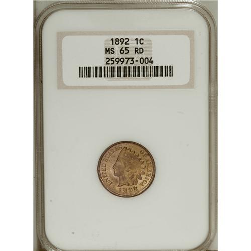 <B>1892<1C> MS65 Red NGC.</B></I> Boldly struck with shimmering mint frost and lovely, light red-gold toning. Well preserved from contact with faint carbon traces on each side. Census: 36 in 65, 4 finer (8/06).