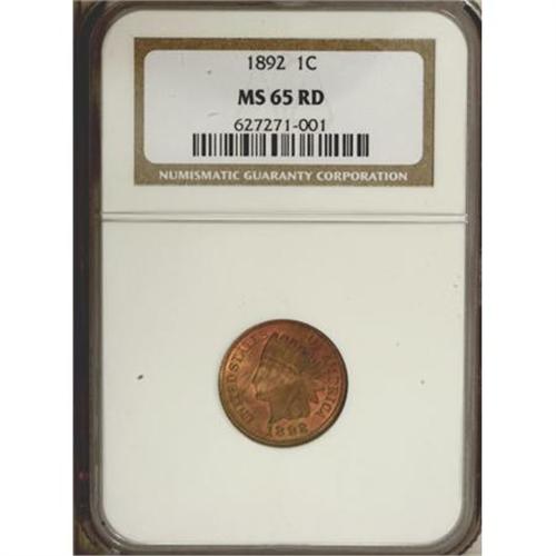 <B>1892 1C MS65 Red NGC.</B></I> The vibrant reddish-orange surfaces of this Gem offer excellent eye appeal, and the overall level of definition is pleasing as well. NGC has graded just four finer Red representatives (1/08).<BR><BR><B>Coin Engraver:</B> James B. Longacre<BR><BR><b>Shipping:</b> Coins & Currency (<a target="_blank" href="http://www.heritageauctions.com/common/shipping.php">view shipping information</a>)