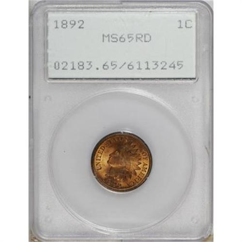 <B>1892 1C MS65 Red PCGS.</B></I> Vivid reddish-orange shadings invigorate the surfaces of this shining Red Gem. The strike is solid, and the overall eye appeal is suggestive of an even finer designation. Housed in a prior-generation PCGS holder. Population: 52 in 65 Red, 12 finer (12/07).<BR><BR><B>Coin Engraver:</B> James B. Longacre<BR><BR><b>Shipping:</b> Coins & Currency (<a target="_blank" href="http://www.heritageauctions.com/common/shipping.php">view shipping information</a>)