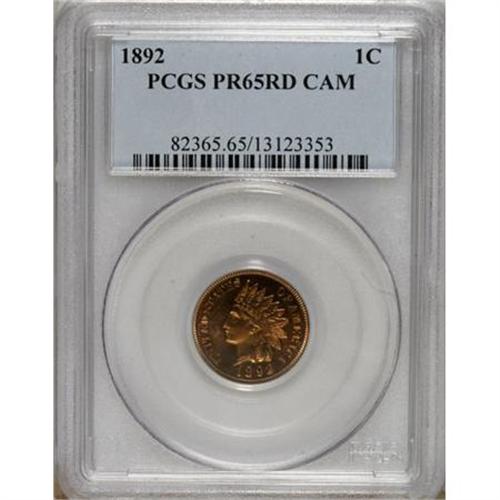 <B>1892 1C PR65 Cameo PCGS.</B></I> While a relatively common date as a proof, few Cameo pieces have been certified. In fact, only three such coins have been graded by PCGS with five finer (5/07). This is a splendid proof that shows deeply mirrored fields with noticeably contrasted devices. The surfaces overall are light red-orange and evenly balanced from one side to the other.<BR><BR><b>Shipping:</b> Coins & Currency (<a target="_blank" href="http://www.heritageauctions.com/common/shipping.php">view shipping information</a>)