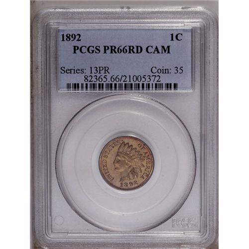 1892 1C PR66 Red Cameo PCGS. Dazzling two-toned mirror 1892[1C] PR66 Red Cameo PCGS.