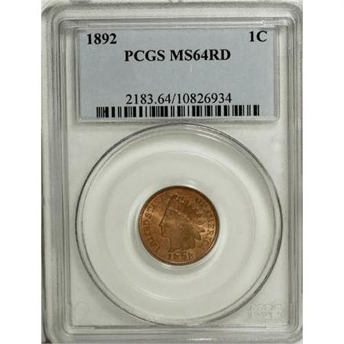 <B>1892 1C MS64 Red PCGS.</B></I> PCGS Population (98/64). NGC Census: (50/40). Mintage: 37,649,832. Numismedia Wsl. Price for NGC/PCGS coin in MS64: $325. (#2183)<BR><BR><B>Coin Engraver:</B> James B. Longacre<BR><BR><b>Shipping:</b> Coins & Currency (<a target="_blank" href="http://www.heritageauctions.com/common/shipping.php">view shipping information</a>)