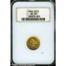 1892 $2 1/2 AU58 NGC. Sharply struck, with bright 1892 $2 1/2 AU58 NGC.