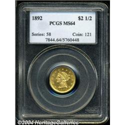 <table><tbody><tr><td><table> <TR><TD width="100%"><TABLE cellSpacing=1 cellPadding=3 width="100%" border=0><TBODY><TR><TD width="100%" bgColor=#79735c><FONT face=arial color=#ffffff size=3><B>Description</B> </FONT></TD></TR><TR><TD width="100%" bgColor=#ffffff><FONT face=arial size=2><B>1892 $2 1/2 MS64 PCGS.</B></I> The 1892 is a rarely seen, low mintage date with only 2,440 business strikes produced. This is a lovely example that has bright prooflike fields and is fully struck in all areas. A couple of minor marks on each side are all that keep this piece from a full Gem grade. </FONT></TD></TR></TBODY></TABLE></TD></TR></TBODY></TABLE><BR><A name=PricesRealized></A><TABLE cellSpacing=0 cellPadding=0 width="100%" bgColor=#000000 border=0><TBODY><TR><TD width="100%"><TABLE cellSpacing=1 cellPadding=3 width="100%" border=0><TBODY><TR><TD width="100%" bgColor=#79735c><A name=PR><FONT face=arial color=#ffffff size=3><B>Previous Prices from Heritage Auctions</B> </FONT></A></TD></TR><TR><TD bgColor=#f6f6ed><TABLE cellSpacing=0 cellPadding=0 width="100%" border=1><TBODY><TR><TD align=middle width="33%"><B>Date</B></TD><TD align=middle width="33%"><B>Service</B></TD><TD align=middle width="33%"><B>Price</B></TD></TR><TR bgColor=whitesmoke><TD width="33%"><B>09/28/2002</B></TD><TD width="33%">NGC</TD><TD width="33%">$3,450.00</TD></TR><TR bgColor=whitesmoke><TD width="33%"><B>10/01/1993</B></TD><TD width="33%">PCGS</TD><TD width="33%">$4,620.00</TD></TR><TR bgColor=whitesmoke><TD width="33%"><B>01/01/1999</B></TD><TD width="33%">PCGS</TD><TD width="33%">$4,600.00</TD></TR></TBODY></TABLE></TD></TR><TR><TD bgColor=#ffffff><FONT face=arial size=1 ?>PLEASE NOTE: All prices realized reflect the final hammer price PLUS the buyer's premium in auctions that charge a buyer's premium. Each item has a notation at the top of the listing indicating whether that lot included a buyer's premium. Example: A item that sells with a final hammer price of $100 and a 20% buyer's premium will display with a price realized of $120. All information listed is intended to be as accurate as possible, but errors are possible. Please use this guide carefully and inform us of any inaccuracies. </FONT></TD></TR></TBODY></TABLE></TD></TR></TBODY></TABLE><BR><TABLE cellSpacing=0 cellPadding=0 width="100%" bgColor=#000000 border=0><TBODY><TR><TD width="100%"><TABLE cellSpacing=1 cellPadding=3 width="100%" border=0><TBODY><TR><TD width="100%" bgColor=#79735c colSpan=6><FONT face=arial color=#ffffff size=3><B>Price Guide*</B> </FONT></TD></TR><TR bgColor=#f6f6ed><TD align=middle><B>Grade</B> </TD><TD align=middle><B>Coin World<BR>(Trends)</B> </TD><TD align=middle><B>Numismedia<BR>Retail</B> </TD><TD align=middle><B>Numismedia<BR>Wholesale</B> </TD><TD align=middle><B>Coin<BR>Universe</B> </TD><TD align=middle><B>Heritage<BR>Value Index</B> </TD></TR><TR bgColor=#ffffff><TD align=middle>63</TD><TD align=right>$2,600.00</TD><TD align=right>---</TD><TD align=right>$1,875.00</TD><TD align=right>$2,500.00</TD><TD align=right>$1,842.00</TD></TR><TR style="FONT-WEIGHT: bold" bgColor=#cccfdd><TD align=middle>64</TD><TD align=right>$5,000.00</TD><TD align=right>---</TD><TD align=right>$4,250.00</TD><TD align=right>$5,000.00</TD><TD align=right>$3,623.33</TD></TR><TR bgColor=#ffffff><TD align=middle>65</TD><TD align=right>---</TD><TD align=right>---</TD><TD align=right>$7,250.00</TD><TD align=right>$10,000.00</TD><TD align=right>$6,560.00</TD></TR><TR bgColor=#ffffff><TD colSpan=6><FONT size=1>*All information listed is intended to be as accurate as possible, but errors are possible. No item may be returned or refused based on this information which is provided as a service to our customers. You should contact each pricing source directly to determine the accuracy of this information. </FONT></TD></TR></TBODY></TABLE></TD></TR></TBODY></TABLE><BR><TABLE cellSpacing=0 cellPadding=0 width="100%" bgColor=#000000 border=0><TBODY><TR><TD width="100%"><TABLE cellSpacing=1 cellPadding=3 width="100%" border=0><TBODY><TR><TD width="100%" bgColor=#79735c><FONT face=arial color=#ffffff size=3><B>Population Guide</B> </FONT></TD></TR><TR bgColor=#ffffff><TD align=middle><!-- Begin Output of Population Grid--><TABLE cellSpacing=0 cellPadding=0 width="100%" border=0><TBODY><TR><TD vAlign=center><TABLE cellSpacing=0 width="100%" border=1 cellsadding="3"><TBODY><TR><TD vAlign=center><TABLE cellSpacing=0 cellPadding=3 width="100%" border=1><TBODY><TR><TD vAlign=center align=middle bgColor=#f0f1e8 colSpan=2 <CENTER><FONT face=Arial size=2><B>PCGS Pop </B></FONT><CENTER></CENTER></TD><TD vAlign=center align=middle bgColor=#f0f1e8 colSpan=2><CENTER><FONT face=Arial size=2><B>NGC Pop</B></CENTER></FONT></TD></TR><TR><TD vAlign=center><FONT face=Arial size=2>(64)</FONT> </TD><TD vAlign=center align=right><FONT face=Arial size=2>14</FONT> </TD><TD vAlign=center><FONT face=Arial size=2>(64)</FONT> </TD><TD vAlign=center align=right><FONT face=Arial size=2>12</FONT> </TD></TR><TR><TD vAlign=center><FONT face=Arial size=2>(>64)</FONT> </TD><TD vAlign=center align=right><FONT face=Arial size=2>12</FONT> </TD><TD vAlign=center><FONT face=Arial size=2>(>64)</FONT> </TD><TD vAlign=center align=right><FONT face=Arial size=2>6</FONT> </TD></TR></TBODY></TABLE></TD></TR></TBODY></TABLE></TD></TR></TBODY></TABLE><!-- End Output of Population Grid--></TD></TR></TBODY></TABLE></TD></TR></TBODY></TABLE><BR><TABLE cellSpacing=0 cellPadding=0 width="100%" bgColor=#000000 border=0><TBODY><TR> <font color='#000000'><span style='background-color: #FFFFFF'><td bgcolor='#FFFFFE'> Important notice: Heritage usually auctions material at the rate of 200-250 lots per hour. On some occasions eBay Live bid software or the Internet may not be able to keep up with the pace of the auction. We recommend placing a realistic absentee bid now as insurance to avoid disappointment. Occasionally the auctioneer may eliminate or reject an eBay Live bid, and the auctioneer may also reopen a lot af