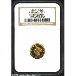 1892 $2 1/2 PR65 Cameo NGC. Intricately detailed with outstanding contrast between the mirrored fields and the heavily frosted, chalky devices. A small, mint-caused blemish in the left obverse field just below nose level is only visible under magnification and, while not really affecting the grade or the terrific eye appeal, should make this high grade specimen easy to identify in the future. Production of Proof Quarter Eagles was increased to 105 pieces in 1892 and it can be reliably estimated that at least half of those survive today. The majority, however, are vastly inferior to this impressive Gem specimen. Population: 2 in 65, 3 finer (10/02). From the Ashland City Collection. Important notice: We expect to be auctioning lots at the rate of 200-250 per hour. Sometimes eBay Premier live bid software cannot keep up with that pace, so we strongly recommend that you place a realistic proxy bid now as insurance to avoid disappointment. Also please note that all Heritage/CAA lots purchased through eBay Premier carry a 20% Buyer's Premium. Please make sure you read the Terms and Conditions.