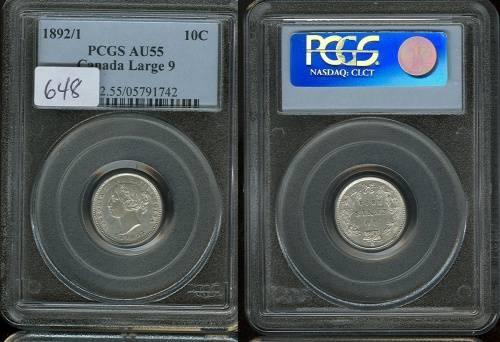 1892 2 over 1 variety PCGS AU55. Very scarce and and seldom offered. Brilliant with lots of lustre, a very nice example. Rare.