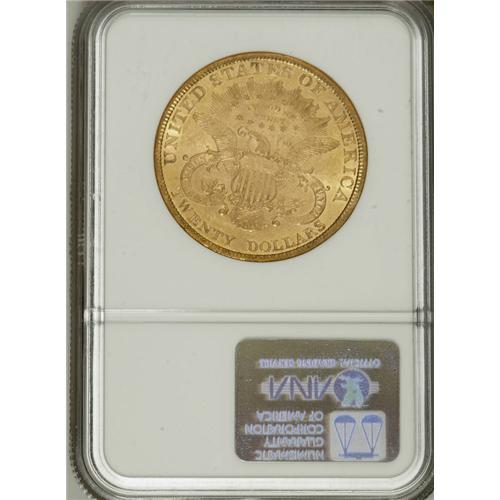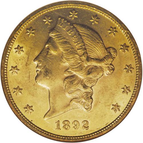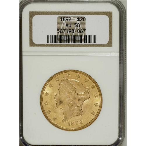 1892 $20 AU58 NGC. Only 4,430 business strikes of this