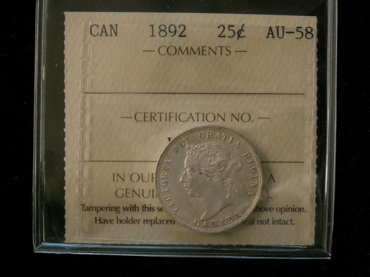 1892 25¢ ICCS AU58. Well struck with clean fields.