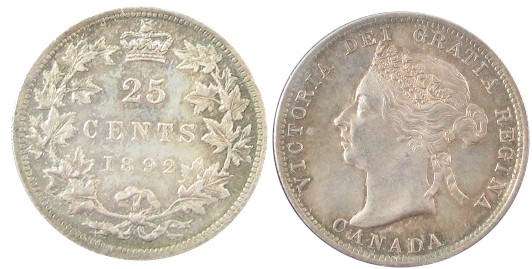 1892 25¢ ICCS MS64, lightly toned. Very nice example. Near GEM!