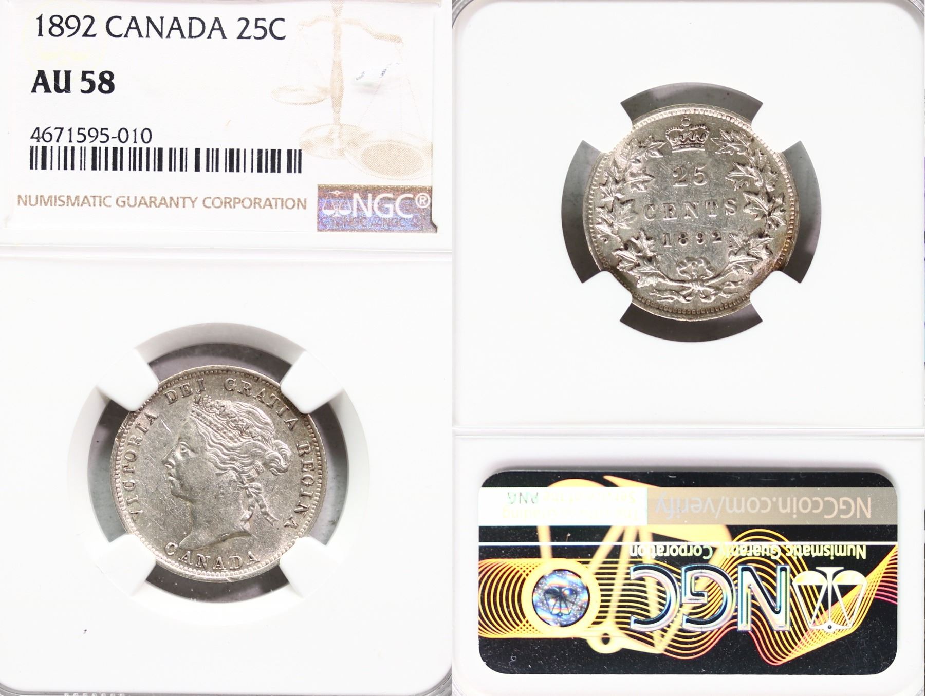1892 25¢ NGC Choice About Uncirculated-58 Brilliant and lustrous.