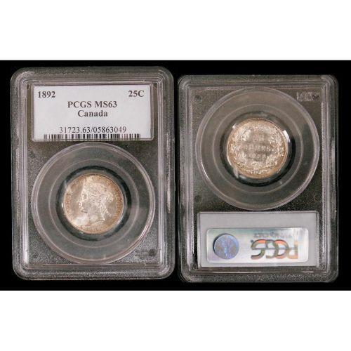 1892 25¢ PCGS/ICCS MS63. Another fully lustrous Victorian example in High grade.