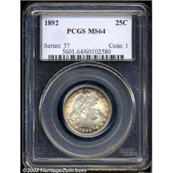 <TABLE cellSpacing=0 cellPadding=0 width="100%" bgColor=#000000 border=0><TBODY><TR><TD width="100%"><TABLE cellSpacing=1 cellPadding=3 width="100%" border=0><TBODY><TR><TD width="100%" bgColor=#79735c><FONT face=arial color=#ffffff size=3><B>Description</B> </FONT></TD></TR><TR><TD width="100%" bgColor=#ffffff><FONT face=arial size=2><B>1892 25C MS64 PCGS.</B></I> Type Two Reverse. The borders have speckled russet-brown and electric-blue colors, while the centers are nearly untoned. Lustrous and razor-sharp, with an essentially immaculate reverse and a few very faint slide marks on the portrait. </FONT></TD></TR></TBODY></TABLE></TD></TR></TBODY></TABLE><BR><A name=PricesRealized></A><TABLE cellSpacing=0 cellPadding=0 width="100%" bgColor=#000000 border=0><TBODY><TR><TD width="100%"><TABLE cellSpacing=1 cellPadding=3 width="100%" border=0><TBODY><TR><TD width="100%" bgColor=#79735c><A name=PR><FONT face=arial color=#ffffff size=3><B>Previous Prices from Heritage Auctions</B> </FONT></A></TD></TR><TR><TD bgColor=#f6f6ed><TABLE cellSpacing=0 cellPadding=0 width="100%" border=1><TBODY><TR><TD align=middle width="33%"><B>Date</B></TD><TD align=middle width="33%"><B>Service</B></TD><TD align=middle width="33%"><B>Price</B></TD></TR><TR bgColor=whitesmoke><TD width="33%"><B>05/02/1997</B></TD><TD width="33%">PCGS</TD><TD width="33%">$275.00</TD></TR><TR bgColor=whitesmoke><TD width="33%"><B>03/01/1998</B></TD><TD width="33%">PCGS</TD><TD width="33%">$2,870.00</TD></TR><TR bgColor=whitesmoke><TD width="33%"><B>08/07/2001</B></TD><TD width="33%">NGC</TD><TD width="33%">$310.00</TD></TR><TR bgColor=whitesmoke><TD width="33%"><B>05/19/1995</B></TD><TD width="33%">NGC</TD><TD width="33%">$231.00</TD></TR><TR bgColor=whitesmoke><TD width="33%"><B>01/06/1993</B></TD><TD width="33%">NGC</TD><TD width="33%">$550.00</TD></TR><TR bgColor=whitesmoke><TD width="33%"><B>08/06/2003</B></TD><TD width="33%">NGC</TD><TD width="33%">$471.50</TD></TR><TR bgColor=whitesmoke><TD width="33%"><B>02/18/2003</B></TD><TD width="33%">NGC</TD><TD width="33%">$333.50</TD></TR></TBODY></TABLE></TD></TR><TR><TD bgColor=#ffffff><FONT face=arial size=1 ?>PLEASE NOTE: All prices realized reflect the final hammer price PLUS the buyer's premium in auctions that charge a buyer's premium. Each item has a notation at the top of the listing indicating whether that lot included a buyer's premium. Example: A item that sells with a final hammer price of $100 and a 20% buyer's premium will display with a price realized of $120. All information listed is intended to be as accurate as possible, but errors are possible. Please use this guide carefully and inform us of any inaccuracies. </FONT></TD></TR></TBODY></TABLE></TD></TR></TBODY></TABLE><BR><TABLE cellSpacing=0 cellPadding=0 width="100%" bgColor=#000000 border=0><TBODY><TR><TD width="100%"><TABLE cellSpacing=1 cellPadding=3 width="100%" border=0><TBODY><TR><TD width="100%" bgColor=#79735c colSpan=6><FONT face=arial color=#ffffff size=3><B>Price Guide*</B> </FONT></TD></TR><TR bgColor=#f6f6ed><TD align=middle><B>Grade</B> </TD><TD align=middle><B>Coin World<BR>(Trends)</B> </TD><TD align=middle><B>Numismedia<BR>Retail</B> </TD><TD align=middle><B>Numismedia<BR>Wholesale</B> </TD><TD align=middle><B>Coin<BR>Universe</B> </TD><TD align=middle><B>Heritage<BR>Value Index</B> </TD></TR><TR bgColor=#ffffff><TD align=middle>63</TD><TD align=right>$260.00</TD><TD align=right>$250.00</TD><TD align=right>$200.00</TD><TD align=right>$285.00</TD><TD align=right>$194.06</TD></TR><TR style="FONT-WEIGHT: bold" bgColor=#cccfdd><TD align=middle>64</TD><TD align=right>$450.00</TD><TD align=right>$565.00</TD><TD align=right>$452.00</TD><TD align=right>$475.00</TD><TD align=right>$325.38</TD></TR><TR bgColor=#ffffff><TD align=middle>65</TD><TD align=right>$1,200.00</TD><TD align=right>---</TD><TD align=right>$1,000.00</TD><TD align=right>$1,275.00</TD><TD align=right>$809.63</TD></TR><TR bgColor=#ffffff><TD colSpan=6><FONT size=1>*All information listed is intended to be as accurate as possible, but errors are possible. No item may be returned or refused based on this information which is provided as a service to our customers. You should contact each pricing source directly to determine the accuracy of this information. </FONT></TD></TR></TBODY></TABLE></TD></TR></TBODY></TABLE><BR><TABLE cellSpacing=0 cellPadding=0 width="100%" bgColor=#000000 border=0><TBODY><TR><TD width="100%"><TABLE cellSpacing=1 cellPadding=3 width="100%" border=0><TBODY><TR><TD width="100%" bgColor=#79735c><FONT face=arial color=#ffffff size=3><B>Population Guide</B> </FONT></TD></TR><TR bgColor=#ffffff><TD align=middle><!-- Begin Output of Population Grid--><TABLE cellSpacing=0 cellPadding=0 width="100%" border=0><TBODY><TR><TD vAlign=center><TABLE cellSpacing=0 width="100%" border=1 cellsadding="3"><TBODY><TR><TD vAlign=center><TABLE cellSpacing=0 cellPadding=3 width="100%" border=1><TBODY><TR><TD vAlign=center align=middle bgColor=#f0f1e8 colSpan=2 <CENTER><FONT face=Arial size=2><B>PCGS Pop </B></FONT><CENTER></CENTER></TD><TD vAlign=center align=middle bgColor=#f0f1e8 colSpan=2><CENTER><FONT face=Arial size=2><B>NGC Pop</B></CENTER></FONT></TD></TR><TR><TD vAlign=center><FONT face=Arial size=2>(64)</FONT> </TD><TD vAlign=center align=right><FONT face=Arial size=2>198</FONT> </TD><TD vAlign=center><FONT face=Arial size=2>(64)</FONT> </TD><TD vAlign=center align=right><FONT face=Arial size=2>271</FONT> </TD></TR><TR><TD vAlign=center><FONT face=Arial size=2>(>64)</FONT> </TD><TD vAlign=center align=right><FONT face=Arial size=2>145</FONT> </TD><TD vAlign=center><FONT face=Arial size=2>(>64)</FONT> </TD><TD vAlign=center align=right><FONT face=Arial size=2>211</FONT> </TD></TR></TBODY></TABLE></TD></TR></TBODY></TABLE></TD></TR></TBODY></TABLE><!-- End Output of Population Grid--> Important notice: Heritage usually auctions material at the rate of 200-250 lots per hour. On some occasions eBay Live bid software or the Internet 