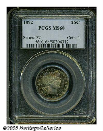 1892 25C MS68 PCGS. Type One Reverse, as identifi