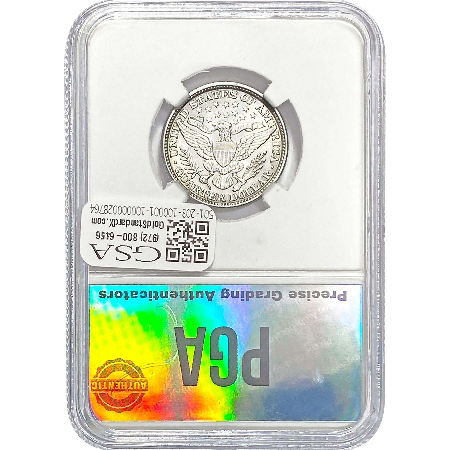 e. Coins sold referencing a third-party grading service are sold “AS IS” without any express or implied warranty, except for a guarantee by GSA that they are genuine. Removal or alteration of the holder, voids all of Bidder’s claims concerning that Product. Certain warranties may be available from the grading services and Bidders are referred to them for further details: Numismatic Guaranty Corporation (NGC), PO Box 4776, Sarasota, FL 34230, www.ngccoin.com/services/writtenguarantee.asp; Professional Coin Grading Services (PCGS), PO Box 9458, Newport Beach, CA 92658, www.pcgs.com/guarantee.html; ANACS, 6555 S. Kenton St., Ste. 303, Englewood, CO 80111; and Independent Coin Grading Co. (ICG), 7901 East Bellview, Ave., Suite 50, Englewood, CO 80111.