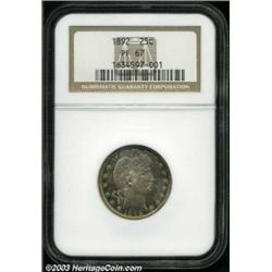 <table><tr><td><TABLE cellSpacing=0 cellPadding=0 width="100%" bgColor=#000000 border=0><TBODY> <TR><TD width="100%"><TABLE cellSpacing=1 cellPadding=3 width="100%" border=0><TBODY><TR><TD width="100%" bgColor=#79735c><FONT face=arial color=#ffffff size=3><B>Description</B> </FONT></TD></TR><TR><TD width="100%" bgColor=#ffffff><FONT face=arial size=2><B>1892 25C PR67 NGC.</B></I> Type Two Reverse. The obverse has iridescent lavender, powder-blue, and gold colors, while the reverse has bright golden-brown and apple-green patina. The strike is razor-sharp, and the surfaces are gloriously preserved. A design contest was held in 1891 for a replacement of the long-lived Seated Liberty type. Chief Engraver Charles Barber was one of judges, and he rejected all entries. Ultimately, his own design for the Dime, Quarter, and Half Dollar was approved. Population: 28 in 67, 9 finer (7/03). </FONT></TD></TR></TBODY></TABLE></TD></TR></TBODY></TABLE><BR><A name=PricesRealized></A><TABLE cellSpacing=0 cellPadding=0 width="100%" bgColor=#000000 border=0><TBODY><TR><TD width="100%"><TABLE cellSpacing=1 cellPadding=3 width="100%" border=0><TBODY><TR><TD width="100%" bgColor=#79735c><A name=PR><FONT face=arial color=#ffffff size=3><B>Previous Prices from Heritage Auctions</B> </FONT></A></TD></TR><TR><TD bgColor=#f6f6ed><TABLE cellSpacing=0 cellPadding=0 width="100%" border=1><TBODY><TR><TD align=middle width="33%"><B>Date</B></TD><TD align=middle width="33%"><B>Service</B></TD><TD align=middle width="33%"><B>Price</B></TD></TR><TR bgColor=whitesmoke><TD width="33%"><B>08/13/1999</B></TD><TD width="33%">NGC</TD><TD width="33%">$7,360.00</TD></TR><TR bgColor=whitesmoke><TD width="33%"><B>03/04/1995</B></TD><TD width="33%">PCGS</TD><TD width="33%">$3,410.00</TD></TR><TR bgColor=whitesmoke><TD width="33%"><B>08/01/1999</B></TD><TD width="33%">PCGS</TD><TD width="33%">$5,520.00</TD></TR></TBODY></TABLE></TD></TR><TR><TD bgColor=#ffffff><FONT face=arial size=1 ?>PLEASE NOTE: All prices realized reflect the final hammer price PLUS the buyer's premium in auctions that charge a buyer's premium. Each item has a notation at the top of the listing indicating whether that lot included a buyer's premium. Example: A item that sells with a final hammer price of $100 and a 20% buyer's premium will display with a price realized of $120. All information listed is intended to be as accurate as possible, but errors are possible. Please use this guide carefully and inform us of any inaccuracies. </FONT></TD></TR></TBODY></TABLE></TD></TR></TBODY></TABLE><BR><TABLE cellSpacing=0 cellPadding=0 width="100%" bgColor=#000000 border=0><TBODY><TR><TD width="100%"><TABLE cellSpacing=1 cellPadding=3 width="100%" border=0><TBODY><TR><TD width="100%" bgColor=#79735c colSpan=6><FONT face=arial color=#ffffff size=3><B>Price Guide*</B> </FONT></TD></TR><TR bgColor=#f6f6ed><TD align=middle><B>Grade</B> </TD><TD align=middle><B>Coin World<BR>(Trends)</B> </TD><TD align=middle><B>Numismedia<BR>Retail</B> </TD><TD align=middle><B>Numismedia<BR>Wholesale</B> </TD><TD align=middle><B>Coin<BR>Universe</B> </TD><TD align=middle><B>Heritage<BR>Value Index</B> </TD></TR><TR bgColor=#ffffff><TD align=middle>66</TD><TD align=right>---</TD><TD align=right>---</TD><TD align=right>$2,350.00</TD><TD align=right>$3,350.00</TD><TD align=right>$2,345.00</TD></TR><TR style="FONT-WEIGHT: bold" bgColor=#cccfdd><TD align=middle>67</TD><TD align=right>---</TD><TD align=right>---</TD><TD align=right>$4,650.00</TD><TD align=right>$5,250.00</TD><TD align=right>$3,675.00</TD></TR><TR bgColor=#ffffff><TD align=middle>68</TD><TD align=right>---</TD><TD align=right>---</TD><TD align=right>$8,150.00</TD><TD align=right>---</TD><TD align=right>---</TD></TR><TR bgColor=#ffffff><TD colSpan=6><FONT size=1>*All information listed is intended to be as accurate as possible, but errors are possible. No item may be returned or refused based on this information which is provided as a service to our customers. You should contact each pricing source directly to determine the accuracy of this information. </FONT></TD></TR></TBODY></TABLE></TD></TR></TBODY></TABLE><BR><TABLE cellSpacing=0 cellPadding=0 width="100%" bgColor=#000000 border=0><TBODY><TR><TD width="100%"><TABLE cellSpacing=1 cellPadding=3 width="100%" border=0><TBODY><TR><TD width="100%" bgColor=#79735c><FONT face=arial color=#ffffff size=3><B>Population Guide</B> </FONT></TD></TR><TR bgColor=#ffffff><TD align=middle><!-- Begin Output of Population Grid--><TABLE cellSpacing=0 cellPadding=0 width="100%" border=0><TBODY><TR><TD vAlign=center><TABLE cellSpacing=0 width="100%" border=1 cellsadding="3"><TBODY><TR><TD vAlign=center><TABLE cellSpacing=0 cellPadding=3 width="100%" border=1><TBODY><TR><TD vAlign=center align=middle bgColor=#f0f1e8 colSpan=2 <CENTER><FONT face=Arial size=2><B>PCGS Pop </B></FONT><CENTER></CENTER></TD><TD vAlign=center align=middle bgColor=#f0f1e8 colSpan=2><CENTER><FONT face=Arial size=2><B>NGC Pop</B></CENTER></FONT></TD></TR><TR><TD vAlign=center><FONT face=Arial size=2>(67)</FONT> </TD><TD vAlign=center align=right><FONT face=Arial size=2>17</FONT> </TD><TD vAlign=center><FONT face=Arial size=2>(67)</FONT> </TD><TD vAlign=center align=right><FONT face=Arial size=2>28</FONT> </TD></TR><TR><TD vAlign=center><FONT face=Arial size=2>(>67)</FONT> </TD><TD vAlign=center align=right><FONT face=Arial size=2>5</FONT> </TD><TD vAlign=center><FONT face=Arial size=2>(>67)</FONT> </TD><TD vAlign=center align=right><FONT face=Arial size=2>9</FONT> </TD></TR></TBODY></TABLE></TD></TR></TBODY></TABLE></TD></TR></TBODY></TABLE><!-- End Output of Population Grid--></TD></TR></TBODY></TABLE></TD></TR></TBODY></TABLE><BR><TABLE cellSpacing=0 cellPadding=0 width="100%" bgColor=#000000 border=0><TBODY><TR> Important notice: Heritage usually auctions material at the rate of 200-250 lots per hour. On some occasions eBay Live bid software or the Internet may not be able to keep up with the pace of the auction. We recomme