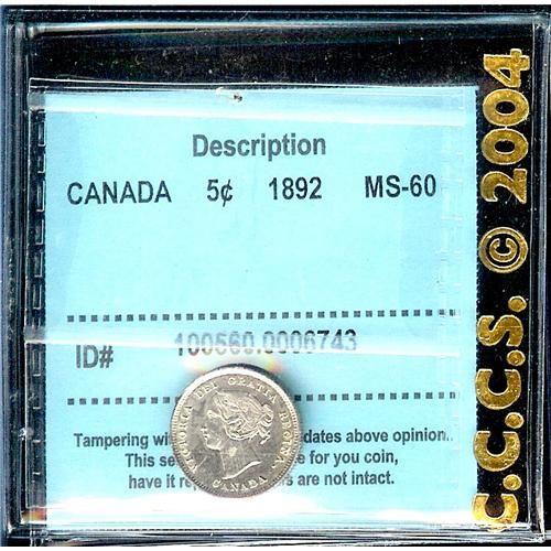 1892 5¢ CCCS MS60 Touch of purple tone otherwise brilliant. Prooflike fields.
