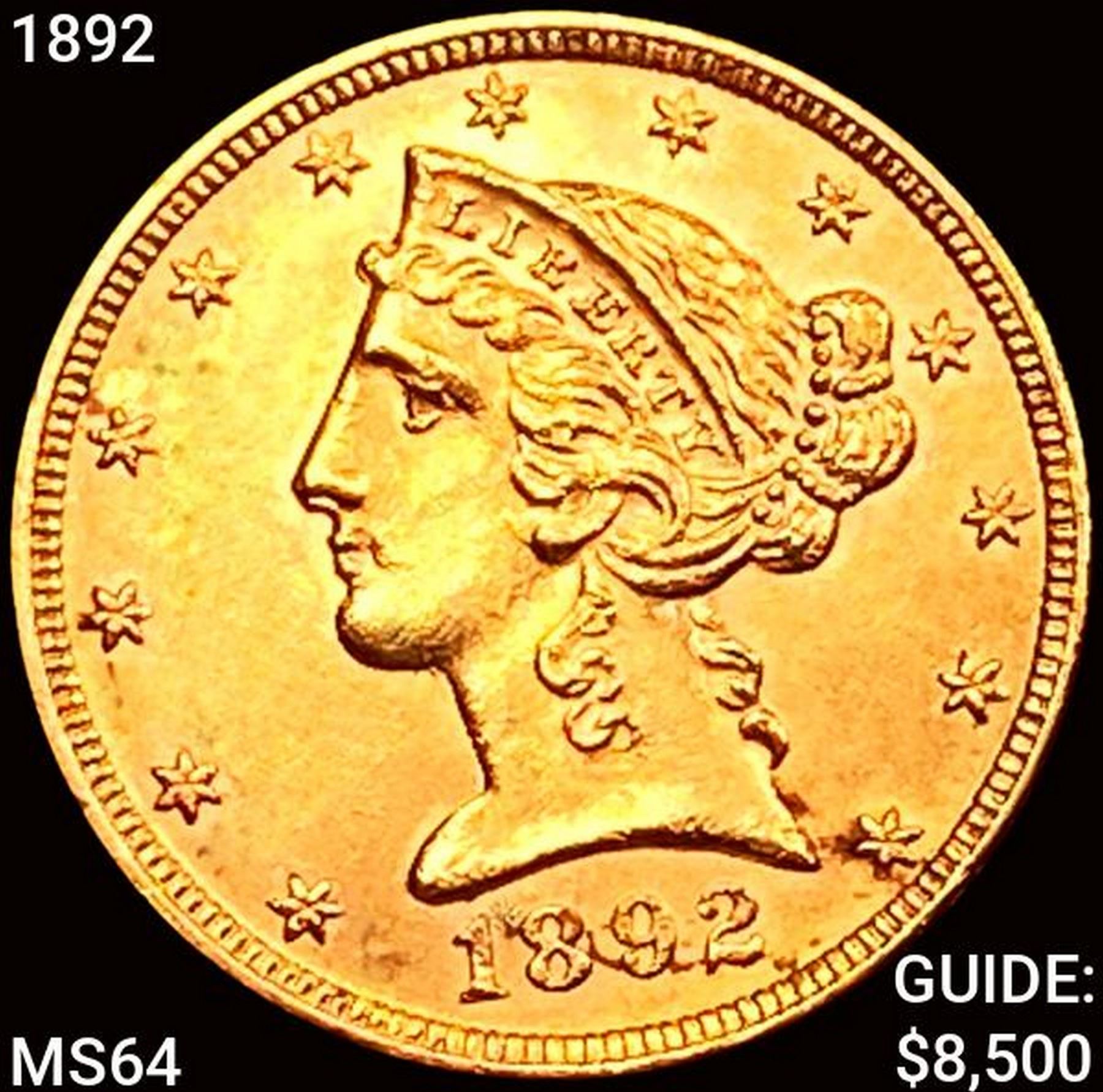 1892 $5 Gold Half Eagle CHOICE BU