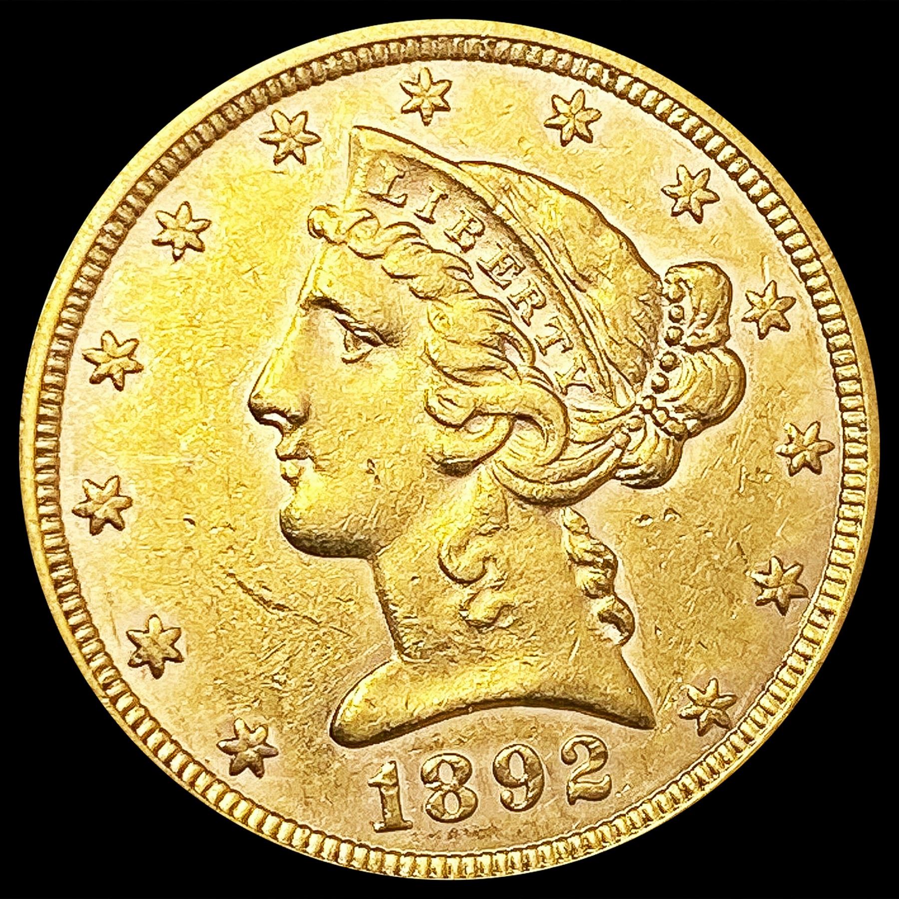 1892 $5 Gold Half Eagle CLOSELY UNCIRCULATED