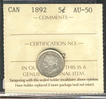 1892 5¢ ICCS AU50.