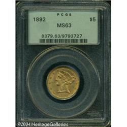 1892 $5 MS63 PCGS. Generally well struck, with two 1892 $5 MS63 PCGS.